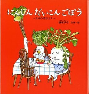 人参が赤、だいこんが白、ゴボウは黒というのはどうして?という昔話を絵本に。