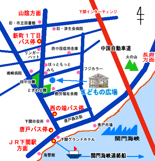 唐戸・東駅経由で[西の端]または[新町1丁目]にて下車