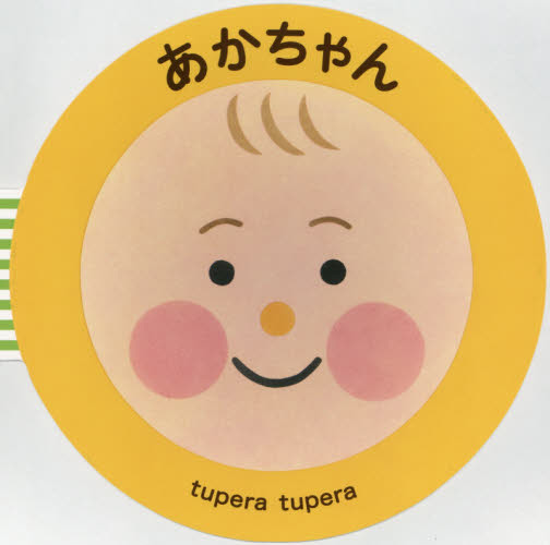 あかちゃんのにこにこ顔、泣き顔、まるいタンバリン。